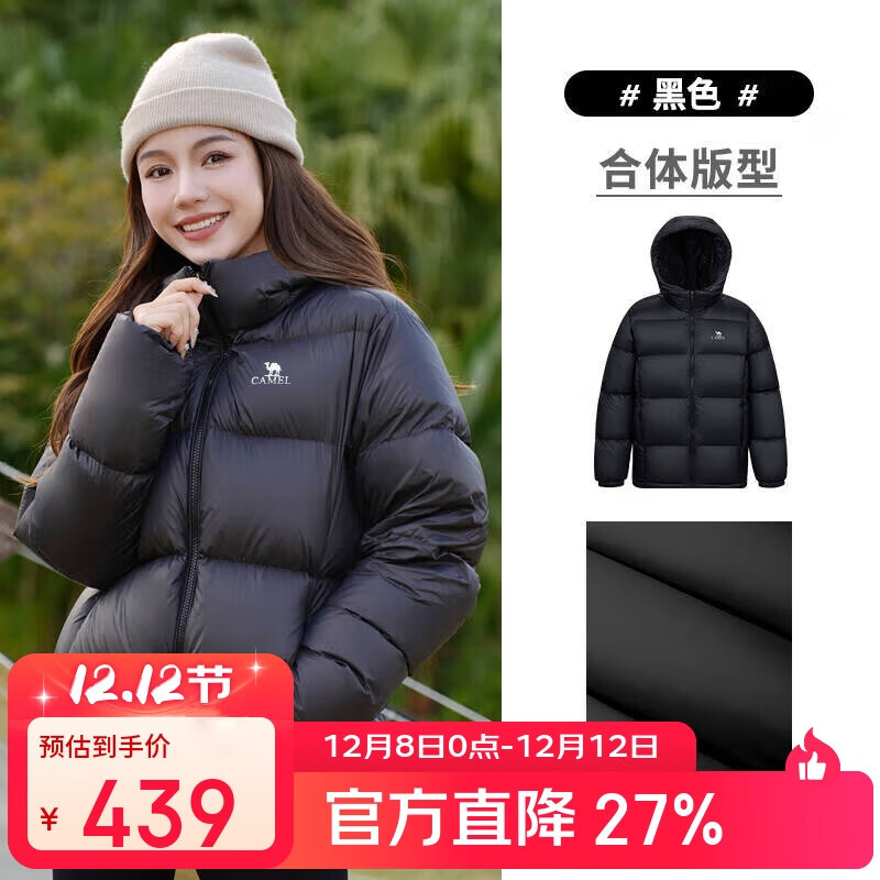 包邮 骆驼女装羽绒服2025秋冬新款男女同款高蓬防风保暖抗静电面包服