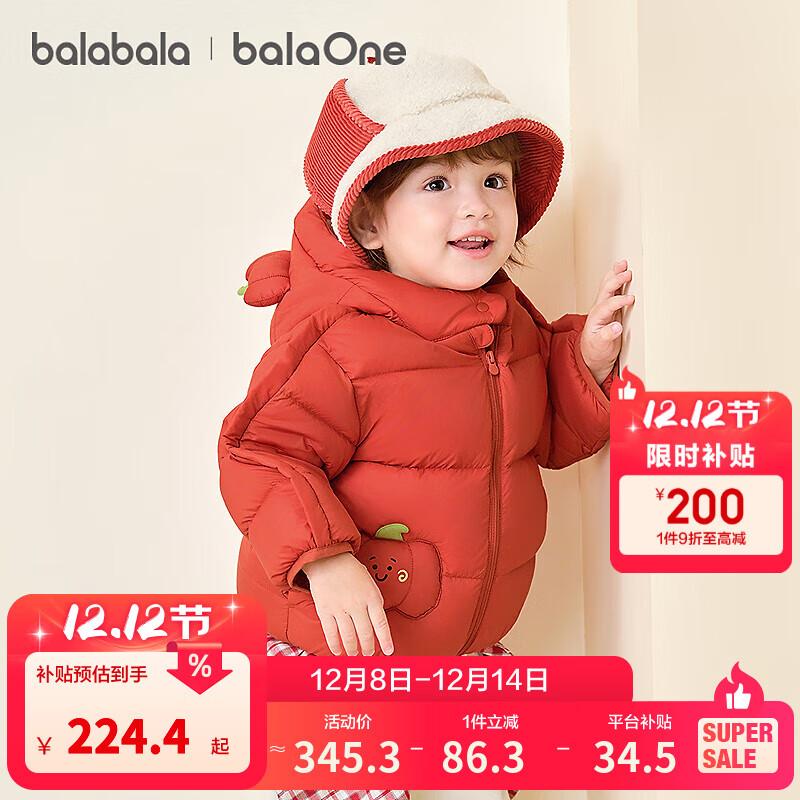 包邮 巴拉巴拉童装儿童羽绒服宝宝男女童2025冬装新款婴儿外套保暖上衣泡芙羽绒 红色小南瓜61003-白鸭绒 100 (充绒量81g 适合2-3岁)